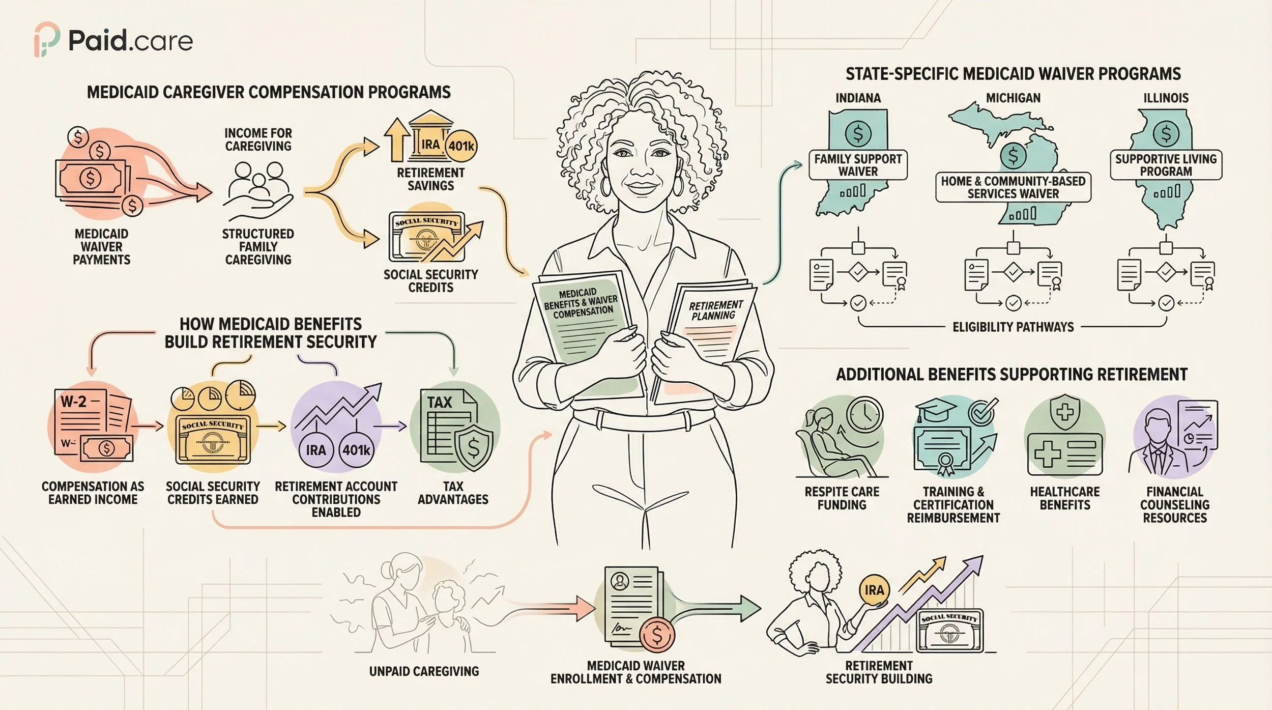 Medicaid and Medicaid waiver programs can provide essential financial support for caregivers, helping them secure their retirement. These programs offer various benefits that can alleviate the financial burden of caregiving, allowing caregivers to focus on their own financial futures.