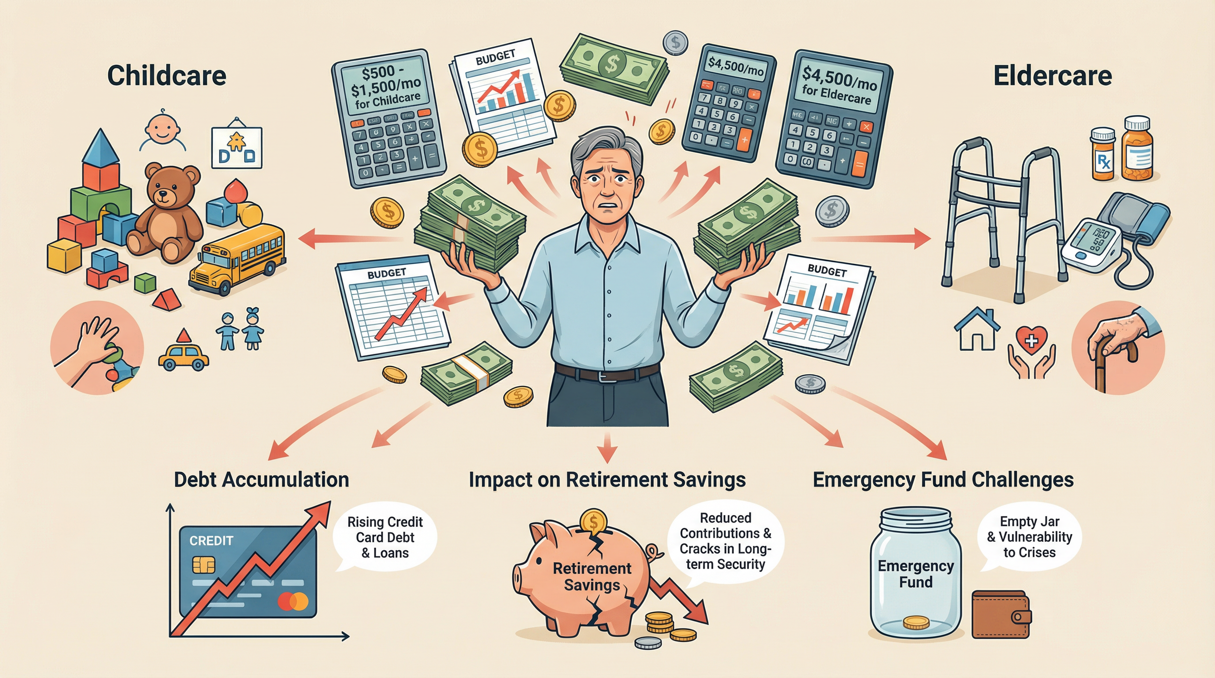 Impact on Retirement Savings: The financial demands of caregiving can lead to reduced contributions to retirement accounts, jeopardizing long-term financial security.